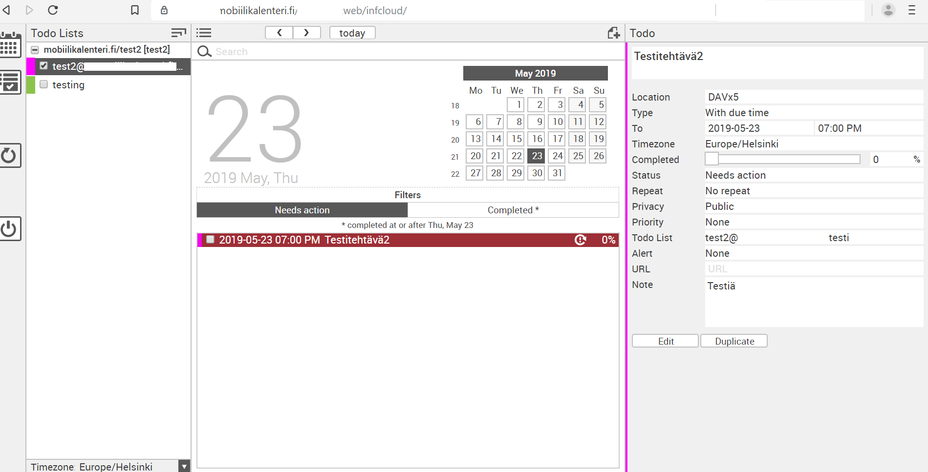 CalDAV/CarDAV-kalentereita ja -yhteystietoja.